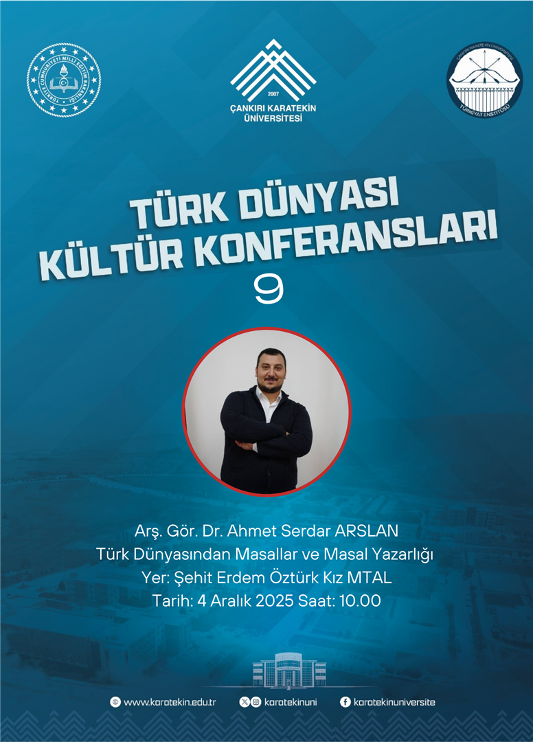 Enstitümüz ile Çankırı İl Millî Eğitim Müdürlüğü iş birliğinde gerçekleştirilen Türk Dünyası Kültür Konferanslarının dokuzuncu programı, Çankırı Şehit Erdem Öztürk Mesleki ve Teknik Anadolu Lisesi`nde düzenlenmiştir.